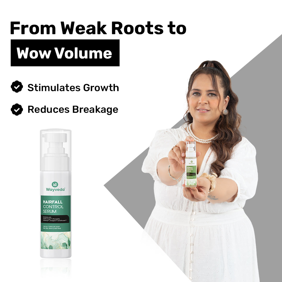 Wayveda Hair Fall Control Serum is a powerful scalp treatment serum designed for direct application to problem areas. This concentrated hair growth serum penetrates deep into hair roots to nourish weak follicles, prevent further hair fall, and stimulate dormant hair growth naturally.
